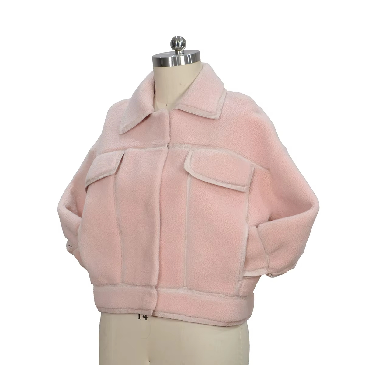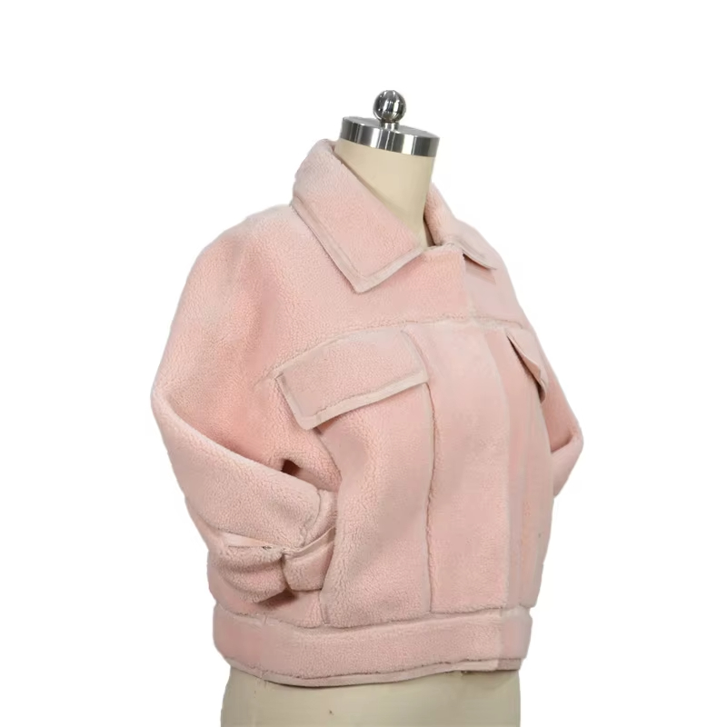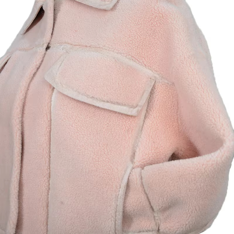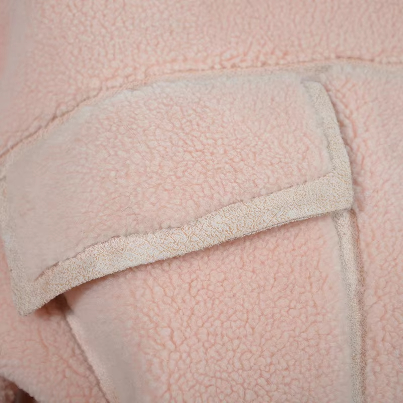 Long Sleeve Pocket Soft Cozy Plush Pink Winter Wool Blend Coats For Women