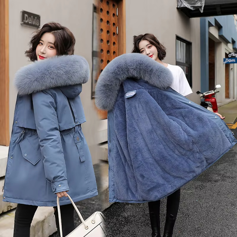 Women's New Fashion Floral Pattern Mid-Length Cotton Jacket Thickened Satin Waterproof with Warmth Long Length Winter Coat