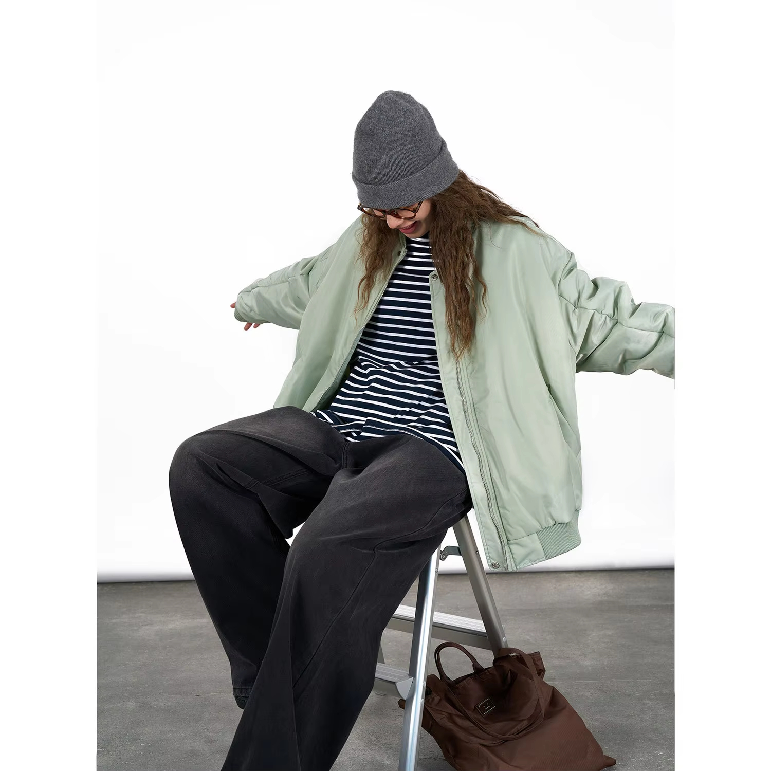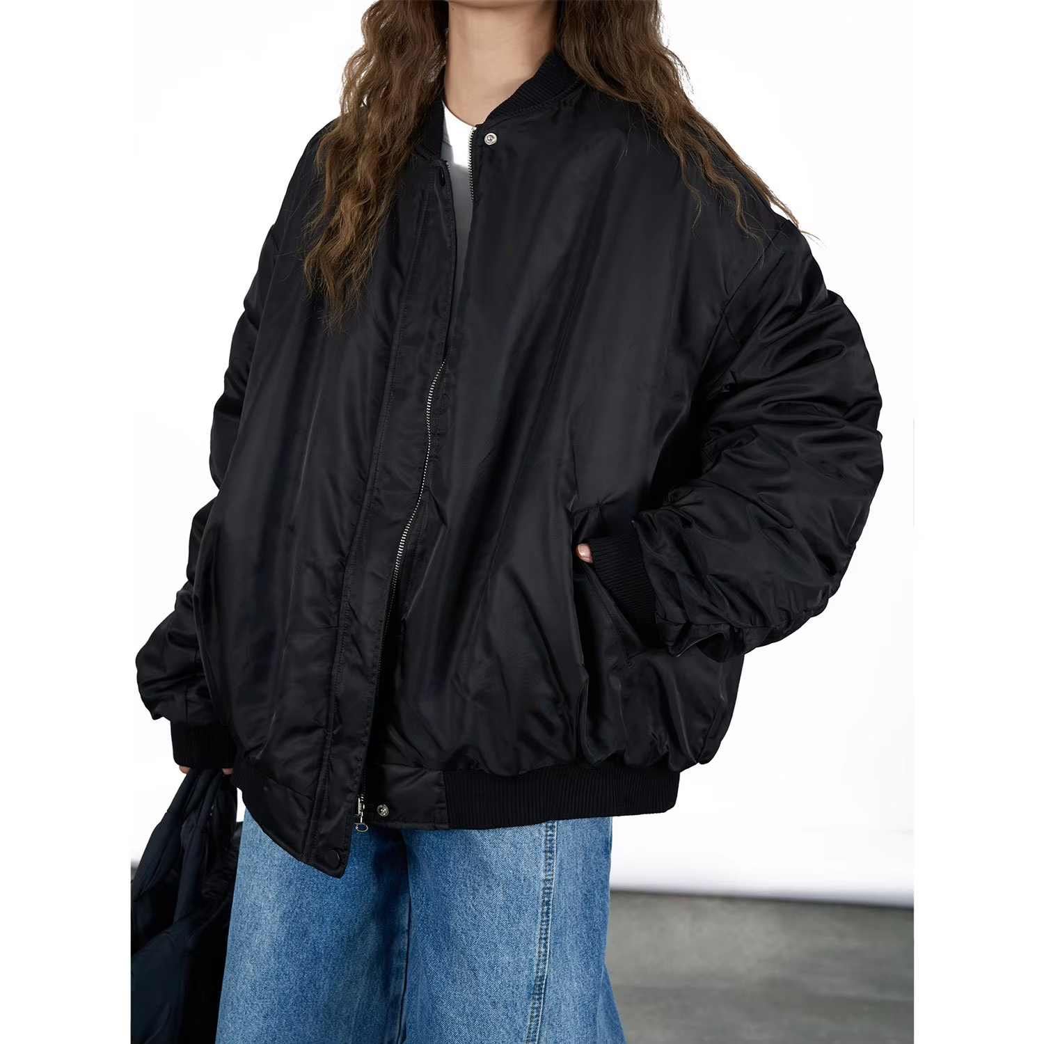 Women's Winter Double-Sided Pilot Cotton Jacket Comfortable Warm Thick Nylon Wool Japanese Street Style Loose Silhouette Zipper
